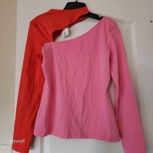 NWT blonde gone rogue Vanity Slit Jersey Top In Pink And Red M