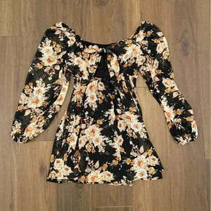NWT blu pepper Floral Long Sleeve Tie Back Mini Dress Size S off the shoulder