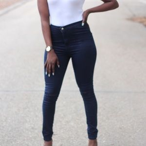 New HIGHWAISTED jeans with slits on the knee . Jeans are very comfortable and long . Size 10
