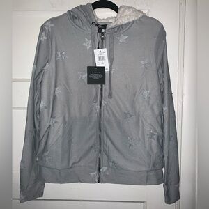 NWT bobeau Heather gray stars hoodie with fuzzy fleece lining size medium