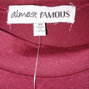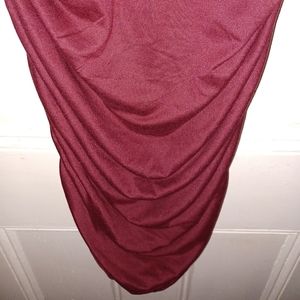This dress is super stylish, burgundy in color, and has a ruffled look at the bottom. This dress would be perfect for a night out on the town. The dress says 3x, but fits more like a 2x