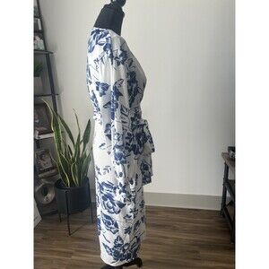 NWT boohoo Blue Floral Print Plunge Tie Waist Front Split Midi Dress US 8