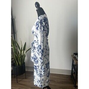NWT boohoo Blue Floral Print Tie Waist Midi Dress Cocktail Party Wedding Event 8