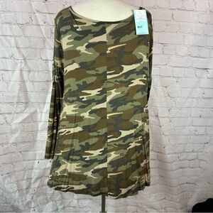 NWT boutique Camouflage long sleeve knit tunic Sequin Pocket Top camo glam plus