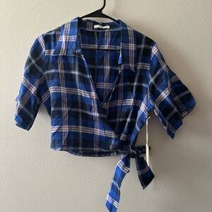 NWT bul BADA TOP BLUE/ PURPLE CHECK size AU 10 natural linen current style US 6