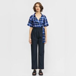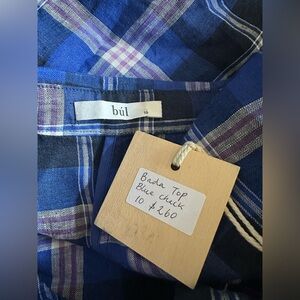 NWT bul BADA TOP BLUE/ PURPLE CHECK size AU 10 natural linen current style US 6