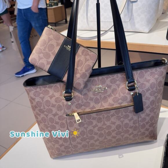 NWT bundle COACH Station Tote Bag Maxi CCD69 & CW854 Zip Wristlet Gold/Tan/Black