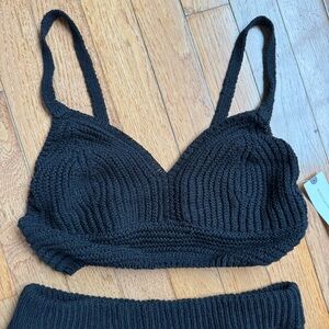 NWT by Anthropologie Black Crochet Knit Skirt Bralette Top Set