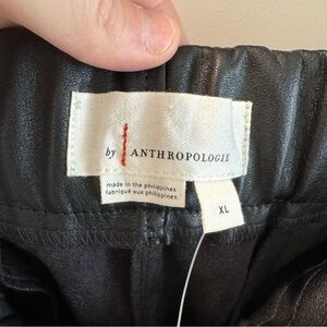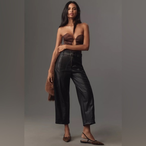 NWT by Anthropologie Black Vegan Leather Belted Barrel Pants Size XL