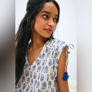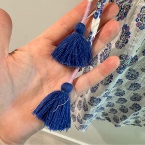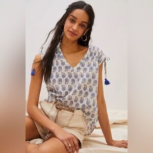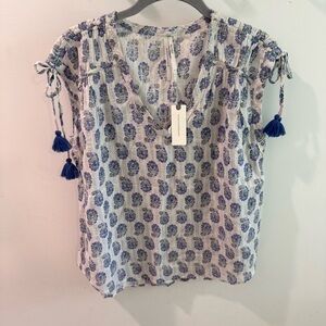 NWT by Anthropologie Terra Shirred Blouse with Tassels Small