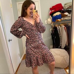 NWT byTiMo Black Pink Viscose Floral Puff Long Sleeve Mini Dress Ditsy Large L