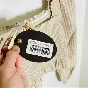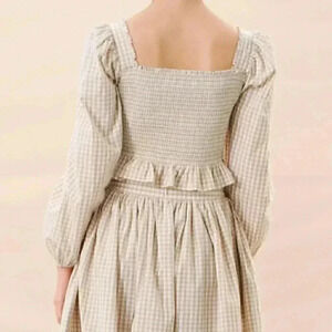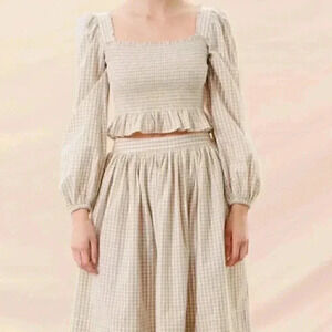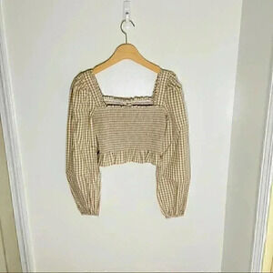 NWT byTimo Smocked Gingham Cropped Top Neutral Colors Spring Top