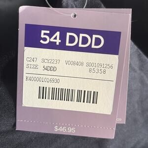 NWT catherines intimates full coverage smooth no wire bra in black 54DDD