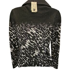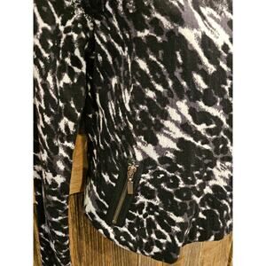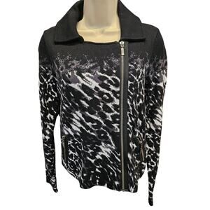 NWT chicos 0 (S) black white knit Leopold print zip pocket shaket moto chic NEW