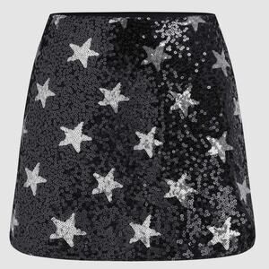 NWT cider SEQUIN MID RISE STAR MINI SKIRT size XL Black sparkle silver star