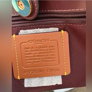 Signature coated canvas Inside zip pocket Snap closure Handles with 10 drop 13 (L) x 11 1/2 (H) x 6 1/4 (W) Style No. CV976