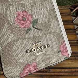 NWT coach Zip Card Case In Signature Floral Canvas With Heart Print CR971