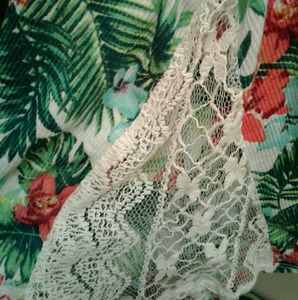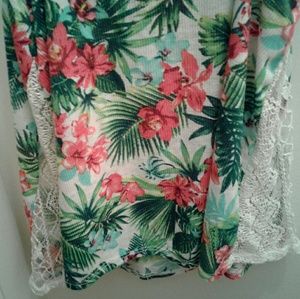 Rue 21 colorful flower tank top, long, has laces on the sides, size large. Brand new with tag.