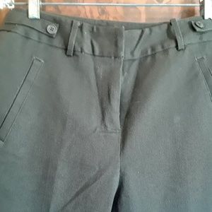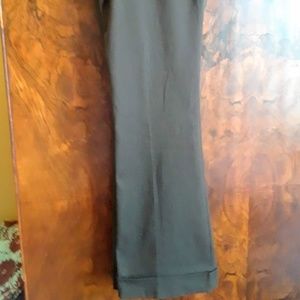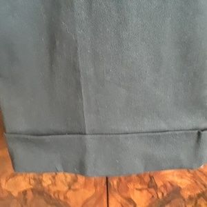 A classic profile defines this versatile pair designed to take you effortlessly from the office to weekend, slight bootcut for a slimming elongating fit. Great greenish-brown color. cotton twill with some Spandex, tab detail at waist. cuff bottom.