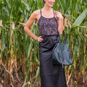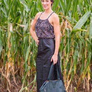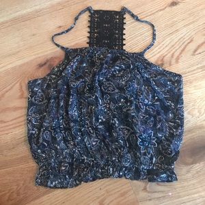 NWT, this printed top has adjustable straps and a crochet-back! Pair it with the vintage leather skirt to dress it up or rock it with some black skinny jeans.