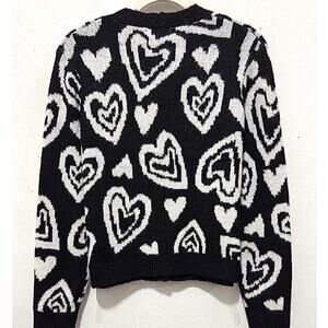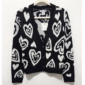 NWT: cupcakes & cashmere - Black, Cropped Cardigan with White Hearts (size S)