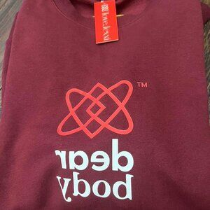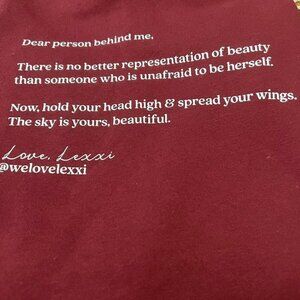 NWT Dear Body Crew Neck in Claret (burgundy) by love, lexxi in size medium. Body positive message on front and Dear Person Behind Me message on back. Size medium in Claret (burgandy).