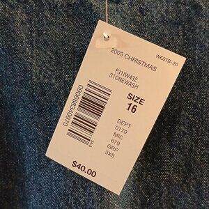 NWT denim maxi skirt embroidered Christmas tree, stars, and presents Sz 16