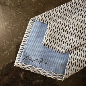 Tino Cosma is a renowned Italian brand specializing in luxurious silk ties, with the company founded in 1946. Made from 100% silk, a hallmark of Tino Cosma's quality and craftsmanship. Features a geometric pattern, often a characteristic design