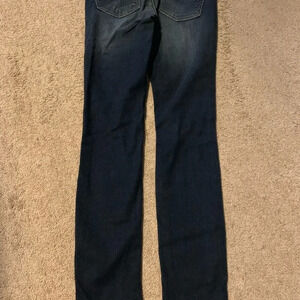 So size 3 dark wash denim. These jeans have just enough distressing and the perfect amount of stretch for all day wear! Brand new with tags!