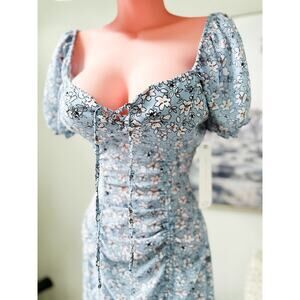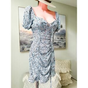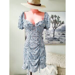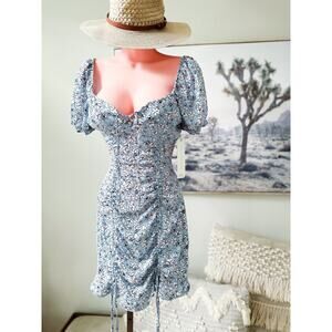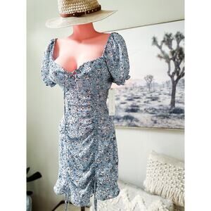 NWT ditsy floral ruched bodycon puff slv mini Dress