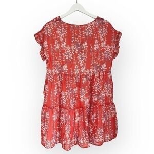 NWT ePretty Floral Tiered V Neck Ruffle Sleeve Mini Dress Red White Size Medium