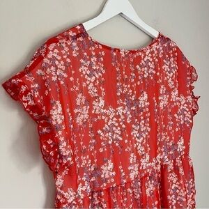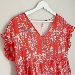 ePretty women’s floral tiered ruffle sleeve mini dress in red and white and purple flowers. Size medium.