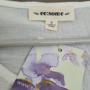 NWT ee:some Women Blouse Top S White Short Sleeves Round Neck Summer Lightweight