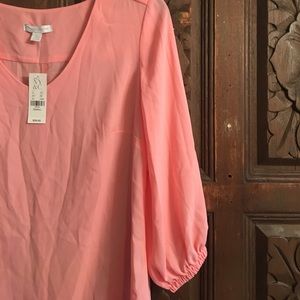 Beautiful high low blouse perfect for tucking in to skirts. It’s a coral color NWT from smoke free home.