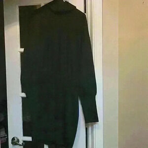 this is a all black tunic with elastic on waist bubble like sleeves with stretch on the bottom turtle neck