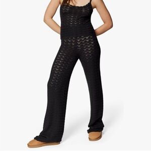 Discover comfort and style with these elegant black knit pants. Perfect for any occasion, these pants offer a chic and versatile look. Lace, wide-leg pointelle sweater pants.