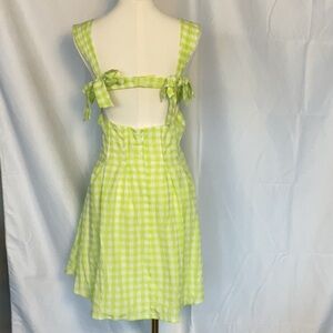 NWT for Love & Lemons August gingham mini in green & white. Sweetheart neck. Back is open with clasped strap decorated with bows. Back zipper. Lined. Size XL