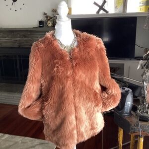 Questions? Leave a comment below! This is a beautiful Faux FUR. Coat or jacket form forever 21. Color is a beautiful bronze look at all of my pictures. Some of the lighting is better than others, but we did manage to capture the true brand’s collar so pretty so fluffy at his pockets and it’s just absolutely incredible. Never worn meticulously stored my items come from a non-pet no smoking home Enjoy them. I have several items listed new this week.