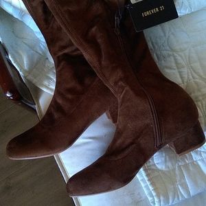 NWT forever 21 faux suede over knee high boots. Color brown size 7