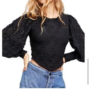 NWT free people black tea time lace crop top