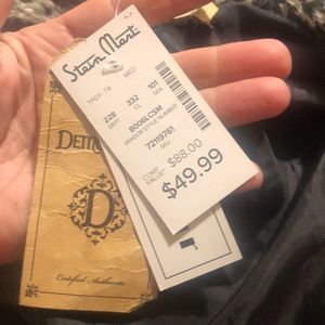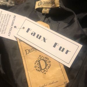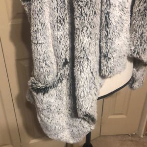 This is an adorable faux fur vest by Democracy It’s very oversized as it says medium. New with tags from Stein mart 49.99. It hangs so pretty in the front and had pockets