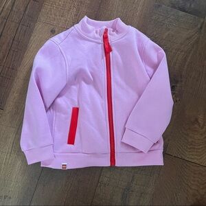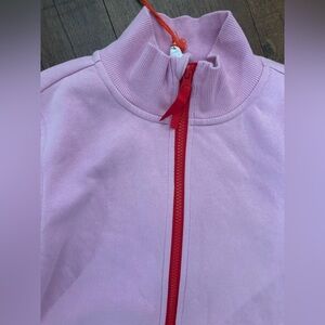 Full-zip midweight track full zip sweatshirt in light pink & red