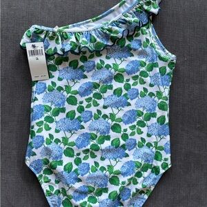 NWT girls Polo Ralph Lauren Floral ruffle One-Shoulder Swimsuit, size 16