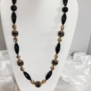 NWT gold tone black beaded twenty six inch necklace 1.2051