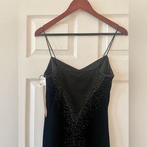 NWT gorgeous maxi dress black velvet with mesh back and beads spaghetti straps