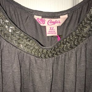 Has beaded design on front at the top.