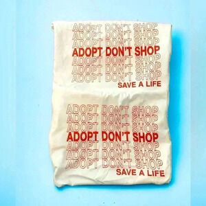 NWT hand screen printed Adopt don’t shop “Thank you” bag white tee all sizes