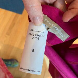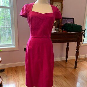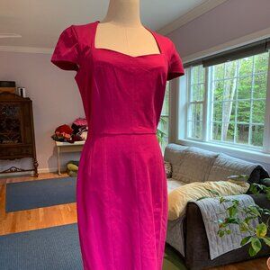 This is a NWT beautiful hot pink short sleeve fitted cap-sleeve dress from Banana Republic in a size 8. Very flattering. Back zipper; hem is still tacked.