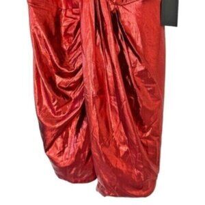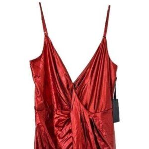 NWT h:ours Lilith Revolve Metallic Dark Red Draped Cocktail Mini Dress Size S