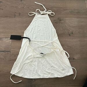 92% rayon, 8% elastane. Dry clean only. Neck tie closure. Criss-cross back straps with tie closure. Jersey knit fabric. Revolve Style No. HURR-WS45. Manufacturer Style No. NETA41 S17.
